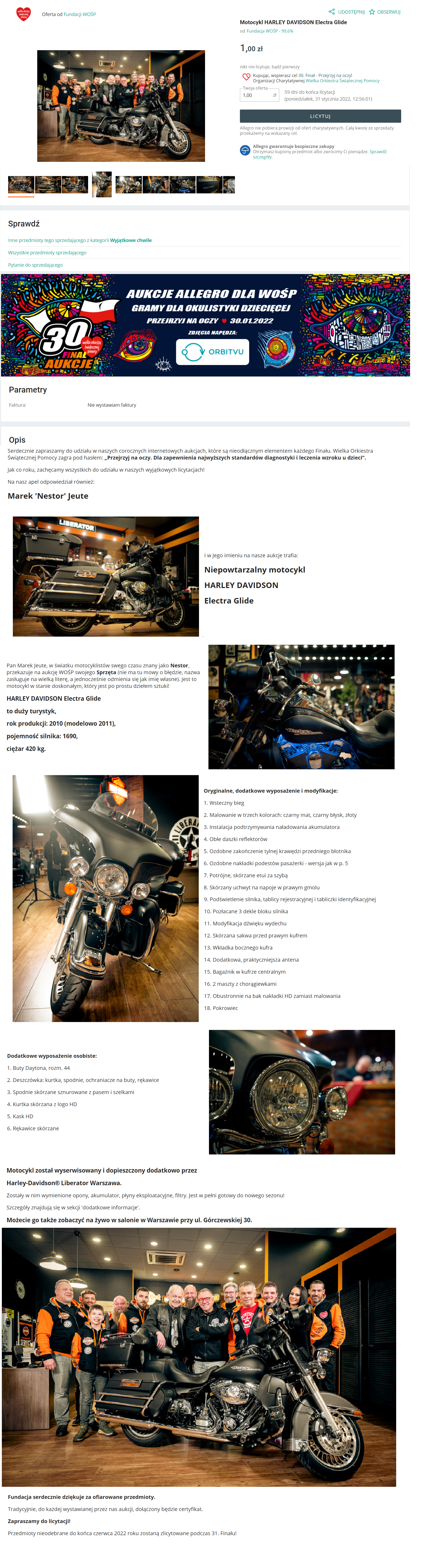 Suma jaką osiągnął mój Harley-Davidson to 100 099 .- zł Jest to suma w pełni satysfakcjonująca chociaż nie zalicza się do ścisłej czołówki co jest całkowicie zrozumiałe.