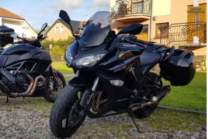 Zalety: Kompaktowa maszyna bardzo przyjazna dla użytkownika. Klasyczna owiewka nawiązuje do Japońskiego stylu motocykli z lat 80 tych Kawasaki GPZ Honda GL1200. Czterocylindrowa rzędówka dysponuje mocą niespełna 114 km i 117 Nm dostępnego przy 6000 RMP i jest bardzo przewidywalny na szczęście ma prędkościomierz. Parkując w grupie motocykli masz pewność że nie spotkasz bliźniaka, zwłaszcza jak przypadkiem kupiłeś limitowaną wersję czarną ze złotą anodą. Motocykl bardzo lubi zakręty baaaardzo głęboko pozwala się złożyć bez obawy o szorowanie armaturą. Zasięg motocykla to na spokojnie 350 km i 60 km na rezerwie co zachęca do hasania wokół wielu kominów (nie sprawdzałem na lotnisku w Giewartowie). Wady: Długie trasy z niską prędkością męczą ręce, i pasażer nawet najbardziej wytrwały z zazdrością spojrzy na zaparkowanego na stacji RT, ST czy FJR. |